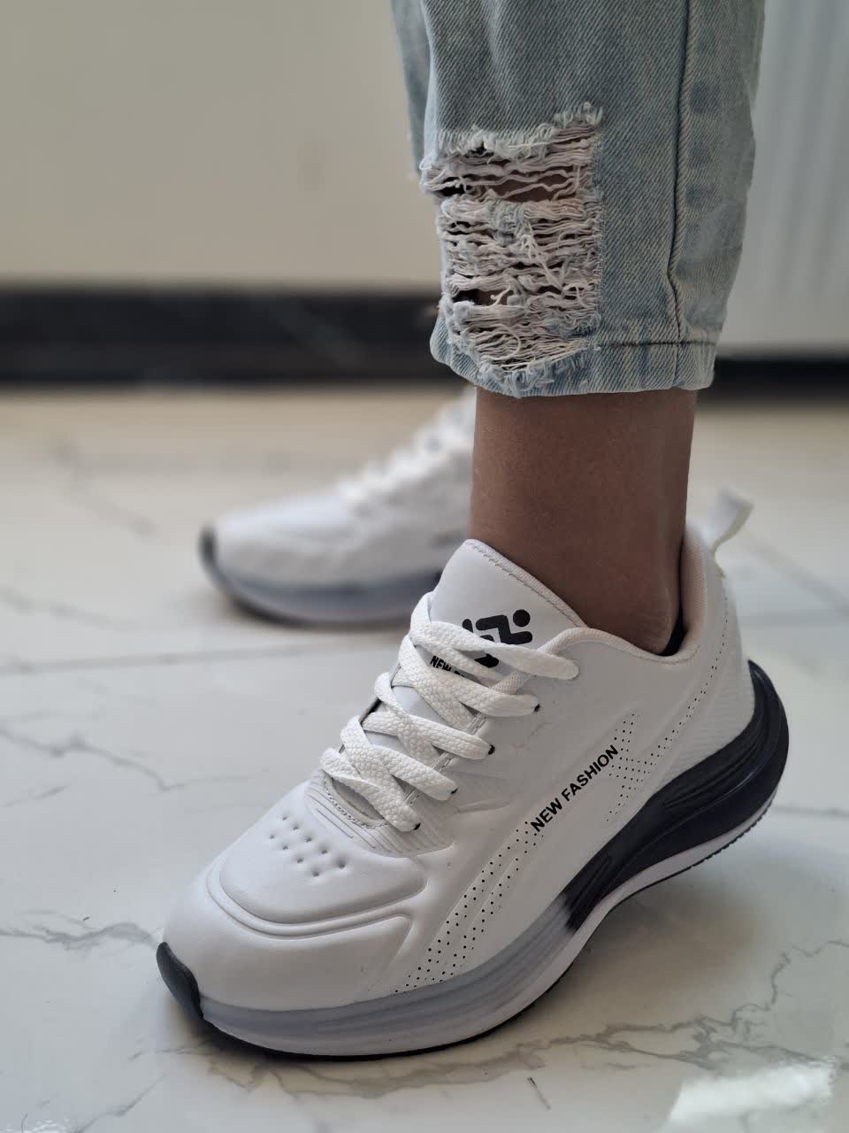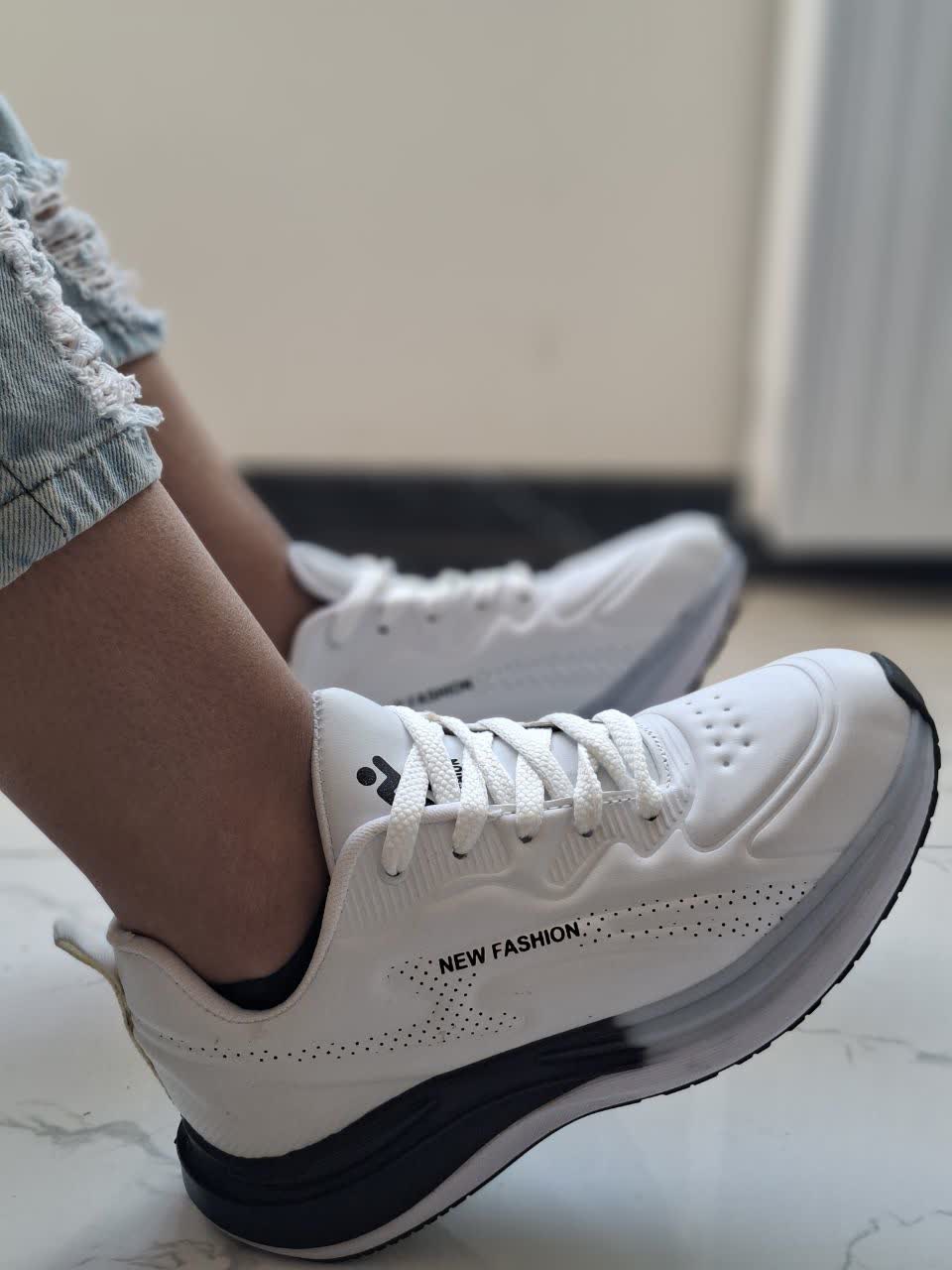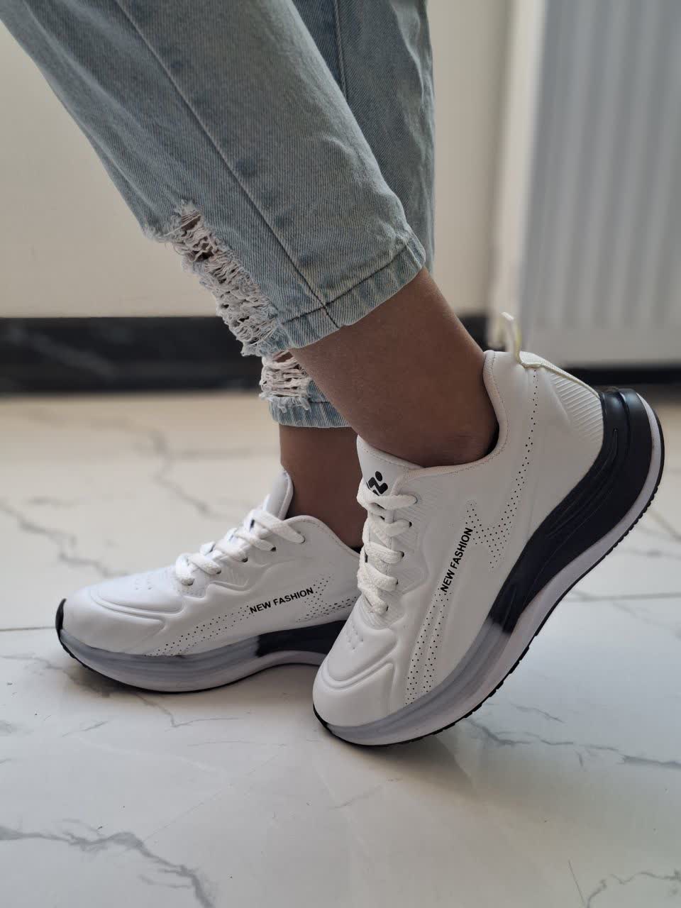 تخفیف ویژه کفش کتونی اسپرت زنانه1 مدل نیوفشن new fashion رنگ سفید مشکی زیره پیو و مدرن