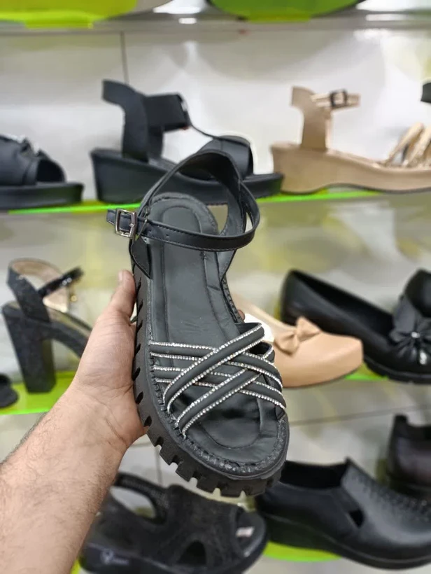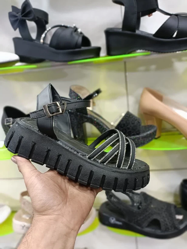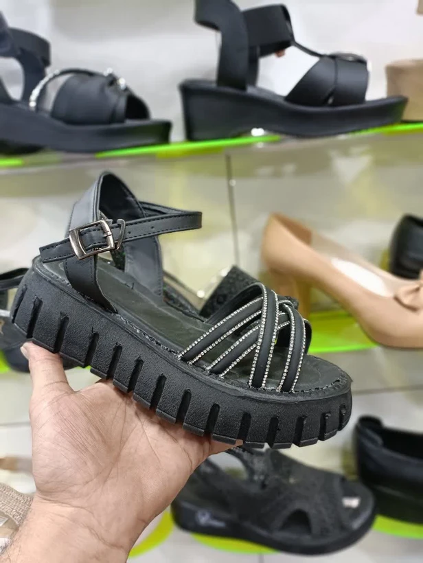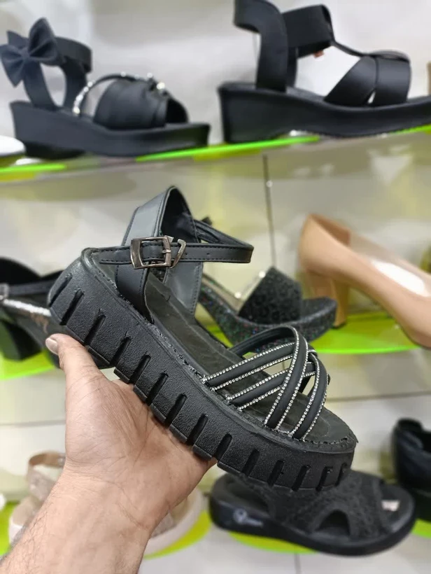 پر فروش ترین کفش صندل زنانه5 بند نگینی رنگ مشکی مناسب خاص پسند ها کد 36