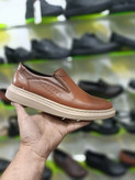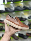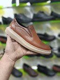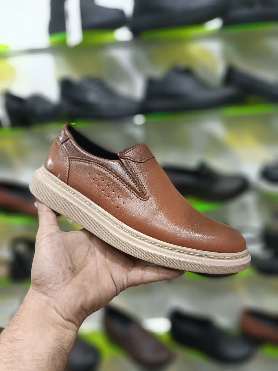کفش اسپرت کلاسیک بدون بند چرم صنعتی رنگ قهوه ای زیره طبی پی یو دوردوخت کد 2055