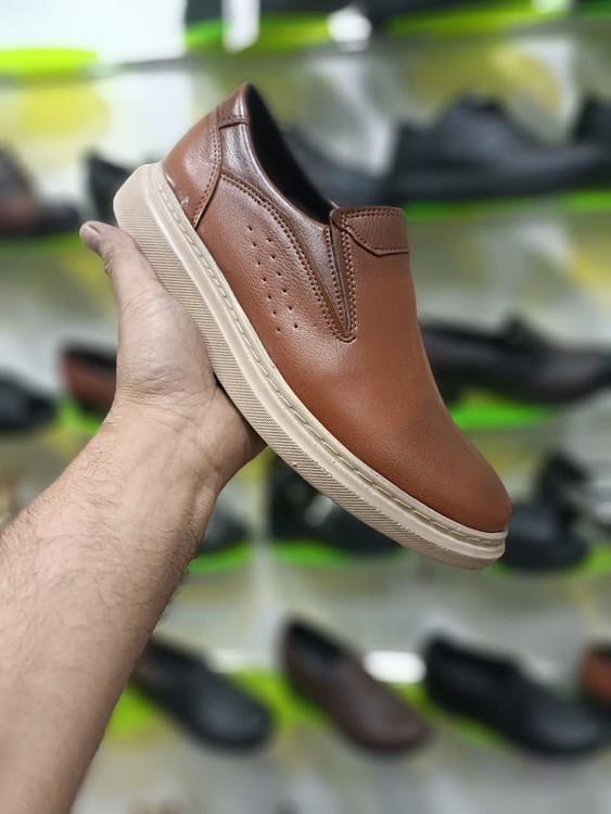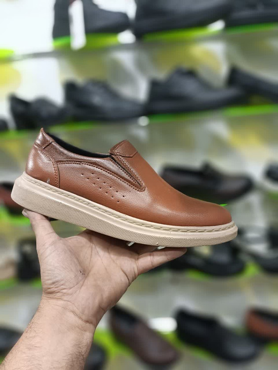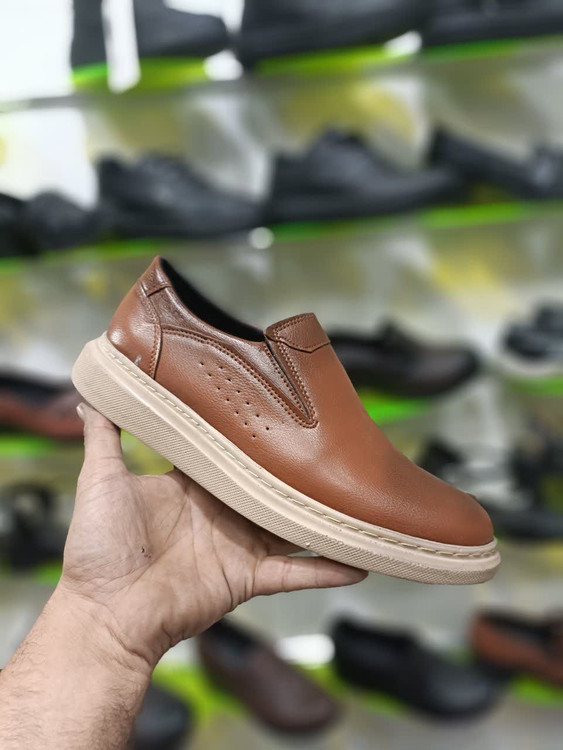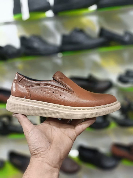 کفش اسپرت کلاسیک بدون بند چرم صنعتی رنگ قهوه ای زیره طبی پی یو دوردوخت کد 2055